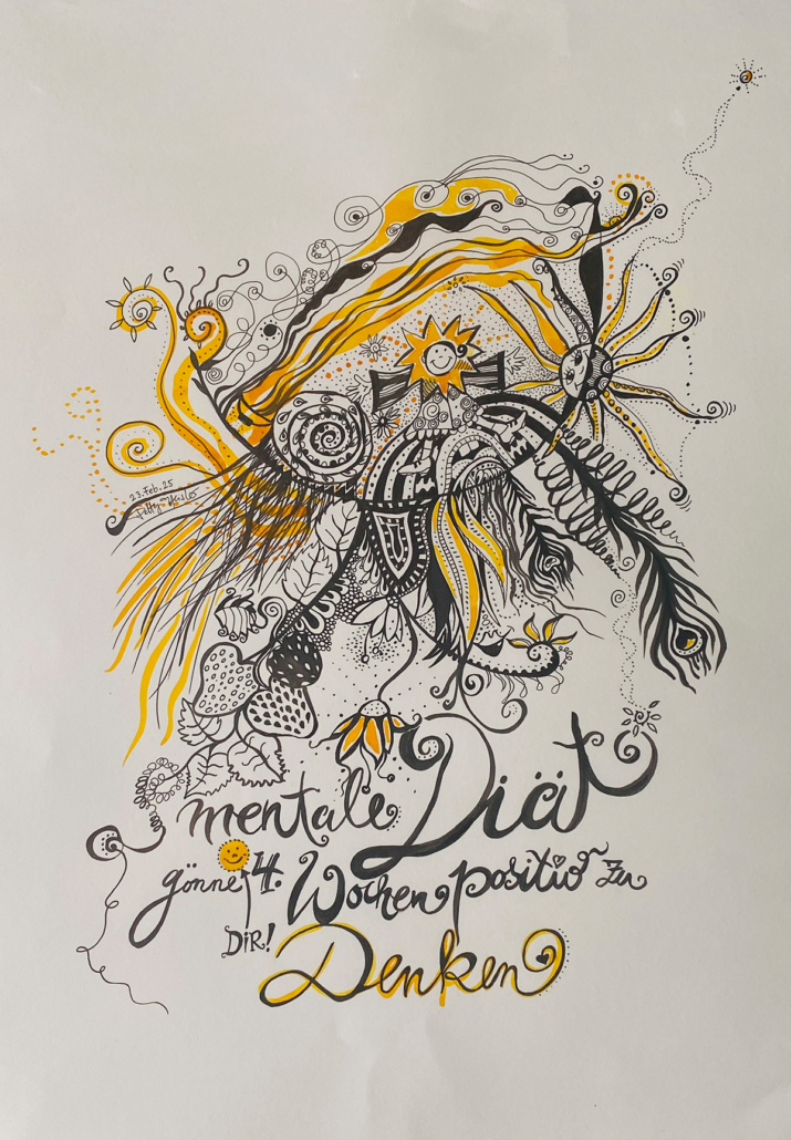 Mit jedem Zug entsteht ein neuer Abschnitt deines Bildes – intuitiv, fließend, verbunden. Zwischen den Spiralen fügst du Muster ein – Linien, Punkte, Wiederholungen.